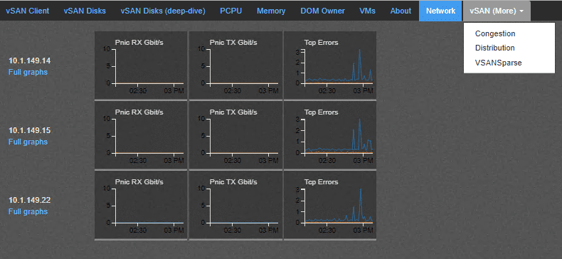 The networking graph as you would expect shows all the pertinent networking statistics of the vSAN environment that you can look into in detail based on the host.