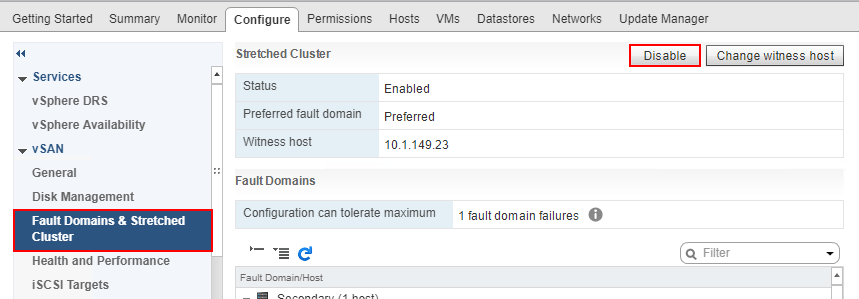 Disable the VMware vSAN Stretched Cluster