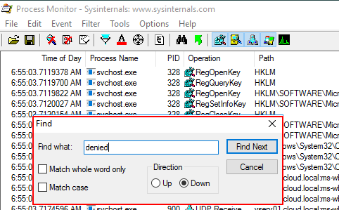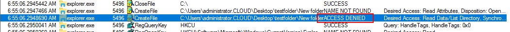 Sure enough, I see the resulting ACCESS DENIED found in Process Monitor.ย Great!