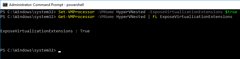Get-VMProcessor -VMName <VMName> | FL ExposeVirtualizationExtensions