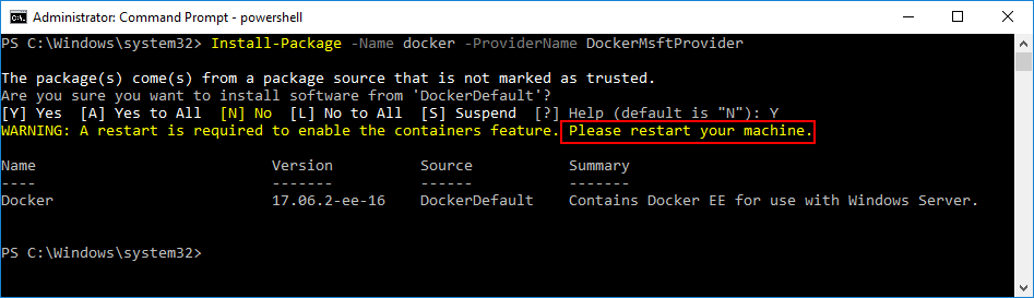 Install-Package -Name docker -ProviderName Docker -ProviderName DockerMsftProvider