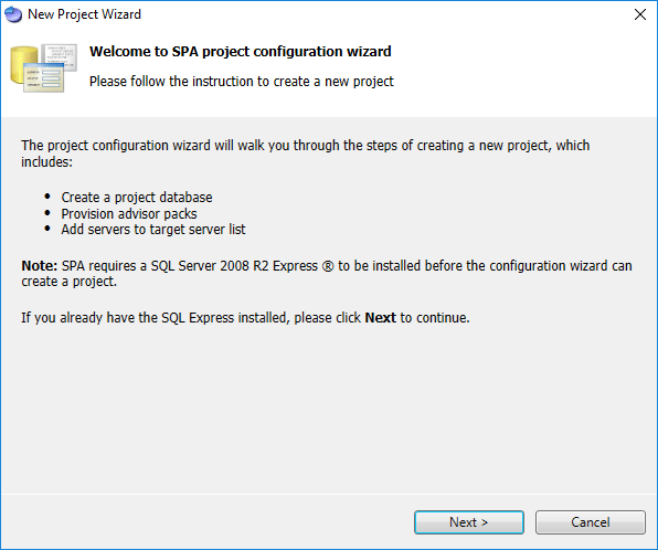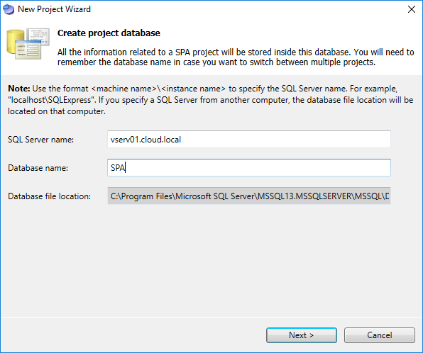 Part of the New Project Wizard that launches is configuring an SPA project database.ย You will need to have access to a SQL Server for this purpose.