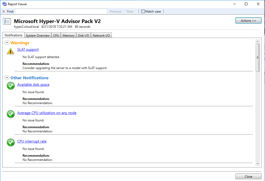 A note with regard to the above, in my testing, I ran the SPA utility against a Windows Server 2016 Server running Hyper-V and it seems to work fine.