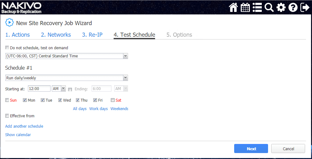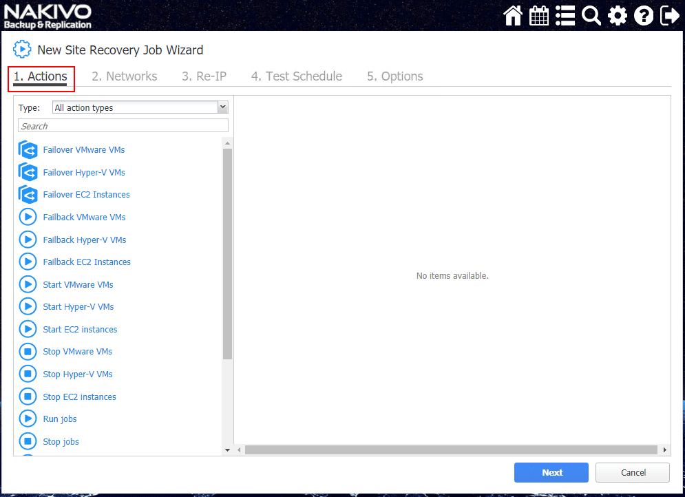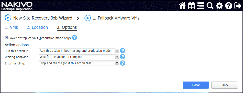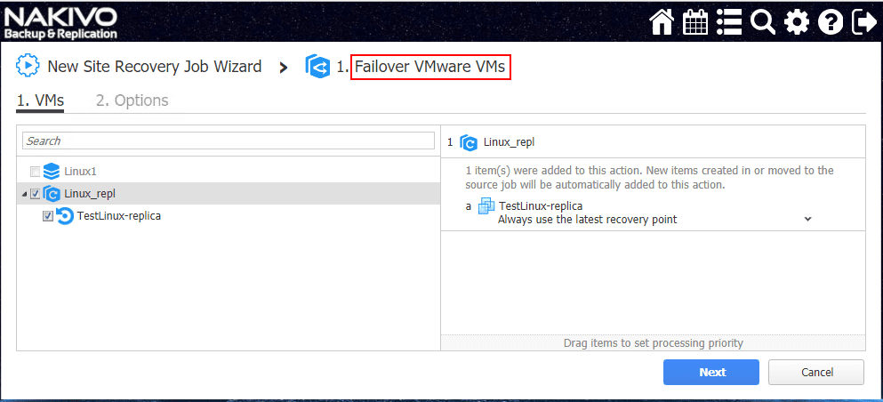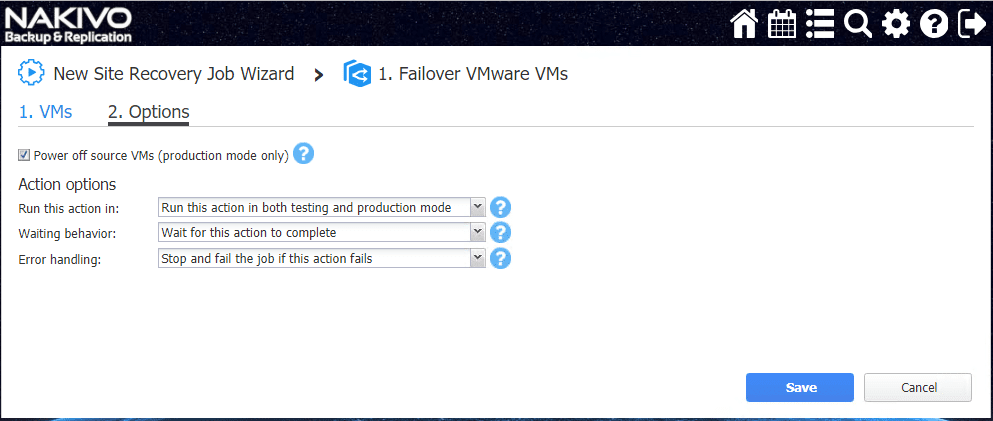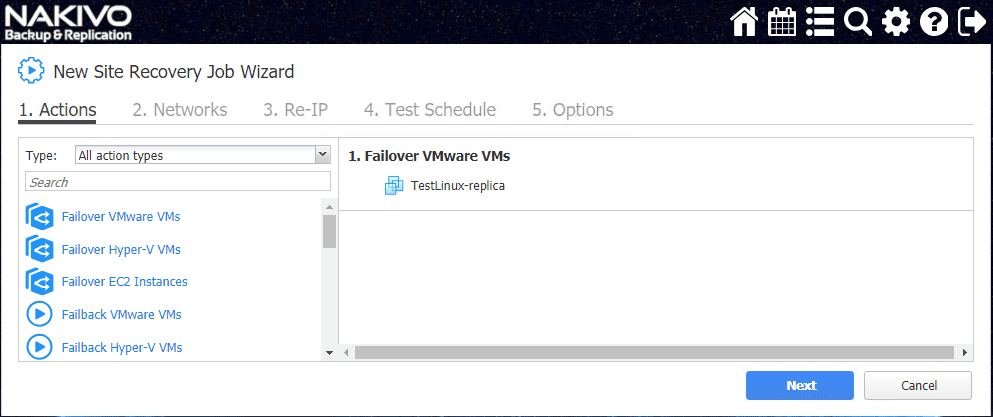 I found the Site Recovery Orchestration options are extremely intuitive and easily configured in the NAKIVO web interface workflow.