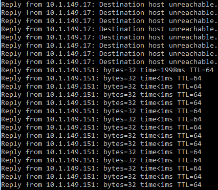 After running the production failover job and switching from my Production test VM to a replica test VM you can see the source VM was powered off and the target replica powered on and then resumed network traffic.ย Pretty awesome!