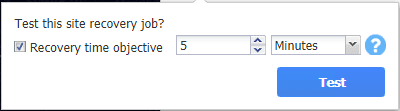 - Test site recovery job – running a test of the site recovery job and its associated actions along with the attached RTO for the site recovery job.
