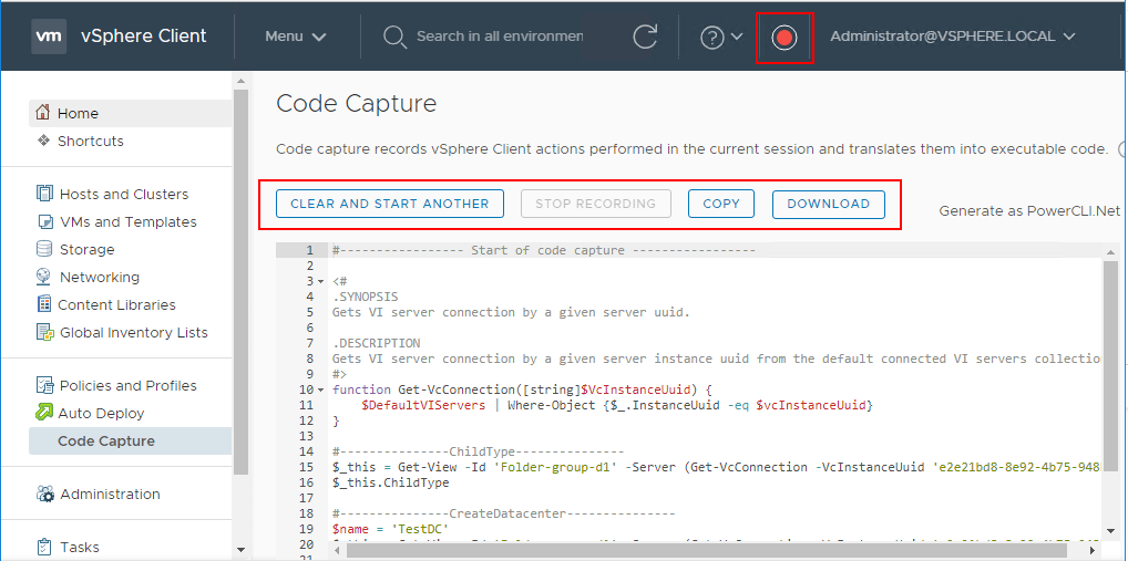 VMware HTML5 Web Client Fling PowerCLI Code Capture