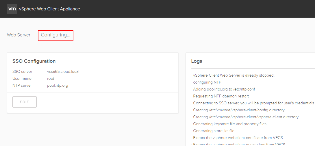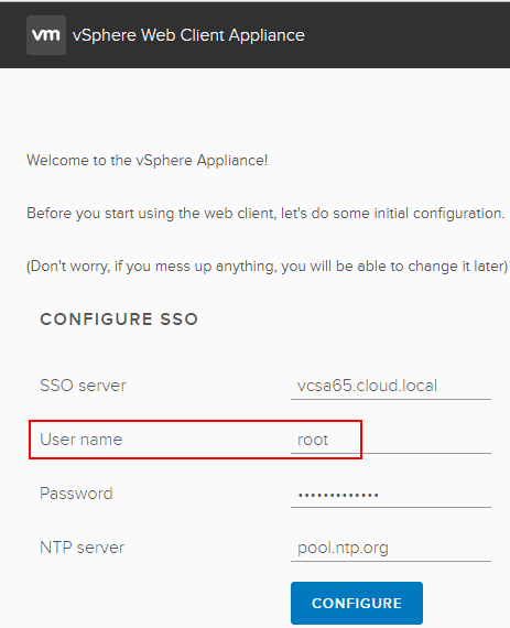After logging in, configure the connection between the HTML5 web client fling appliance and vCenter Server.ย A note below as I made this mistake the first couple of times around configuring the connection, don’t enter yourย SSO credentials here as it will cause the configuration to fail.ย You need to enter your root password for the vCenter VCSA appliance.