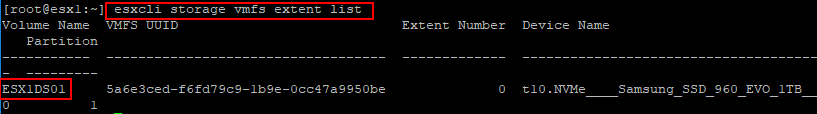 esxcli storage vmfs extent list