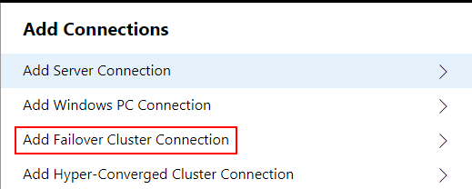 Under the Add Connections configuration, choose Add Failover Cluster Connection.