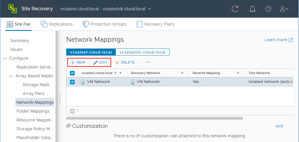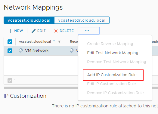 So, we have handled the customization of the network mapping.ย Now, the IP address still has to be configured.ย For that, Site Recovery Manager allows creatingย IP Customizationย rules that allow customizing the IP address of the recovered virtual machine automatically.