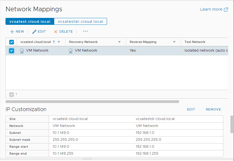 We now have both the network mappings and IP customization configured for our Site Recovery Manager Recovery plans to operate both in test mode and production failover.