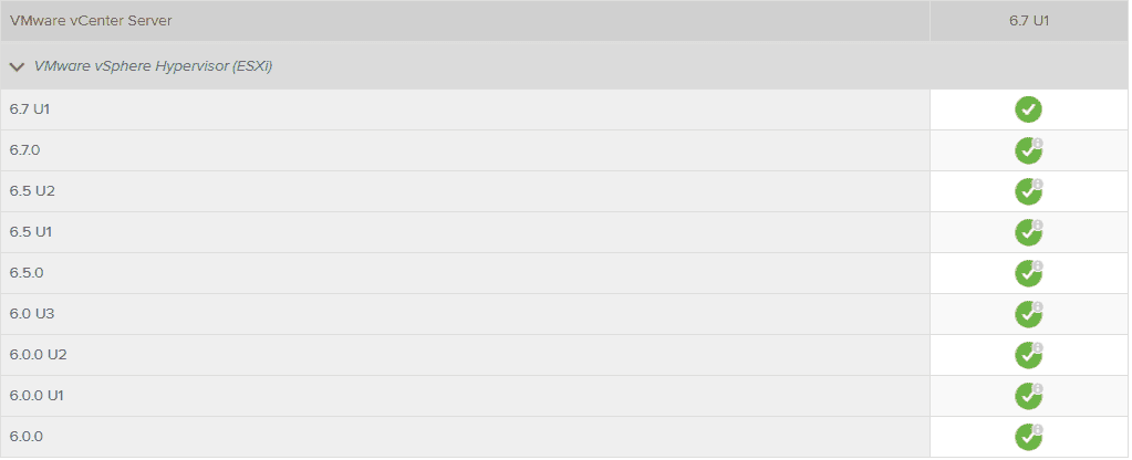 VMware vSphere VCSA 6.7 Update 1 Interoperability and Compatibility