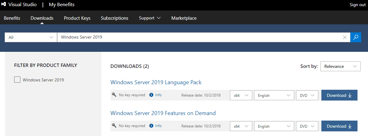 After checking today, the MSDN download site and the Eval Center has the downloads for Windows Server 2019 once again available.ย