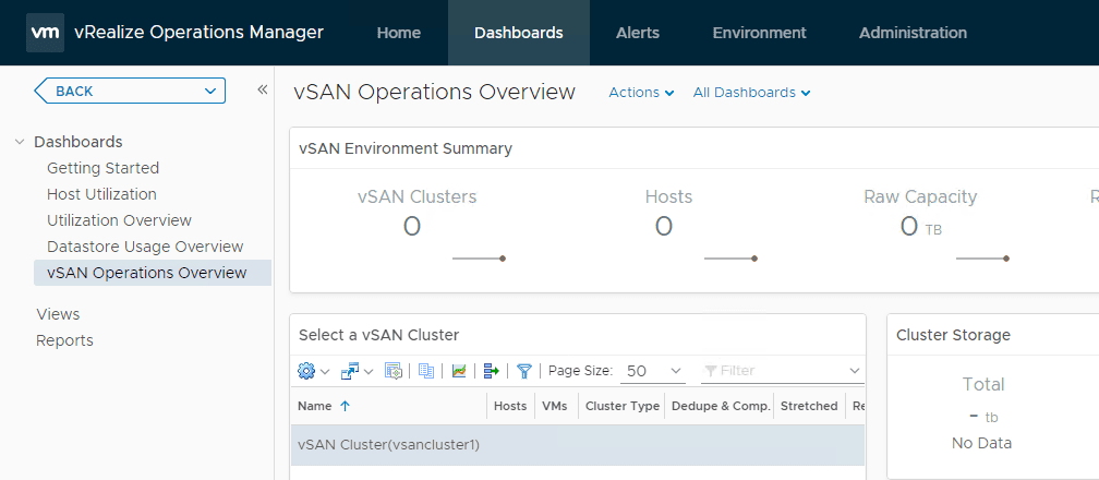 It may take a few minutes for theย vSAN Operations Overview Dashboard to start displaying information as is shown below.ย It may appear blank for a few minutes.ย The dashboard is found underย Dashboards > vSAN Operations Overview.