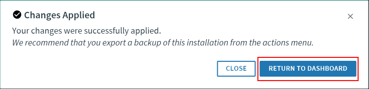 After some time, you will see theย Changes Applied successfully.ย Return to the Dashboard.