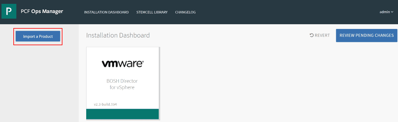 Click theย Import a Product button.ย Choose the Pivotal Container Service file downloaded above.