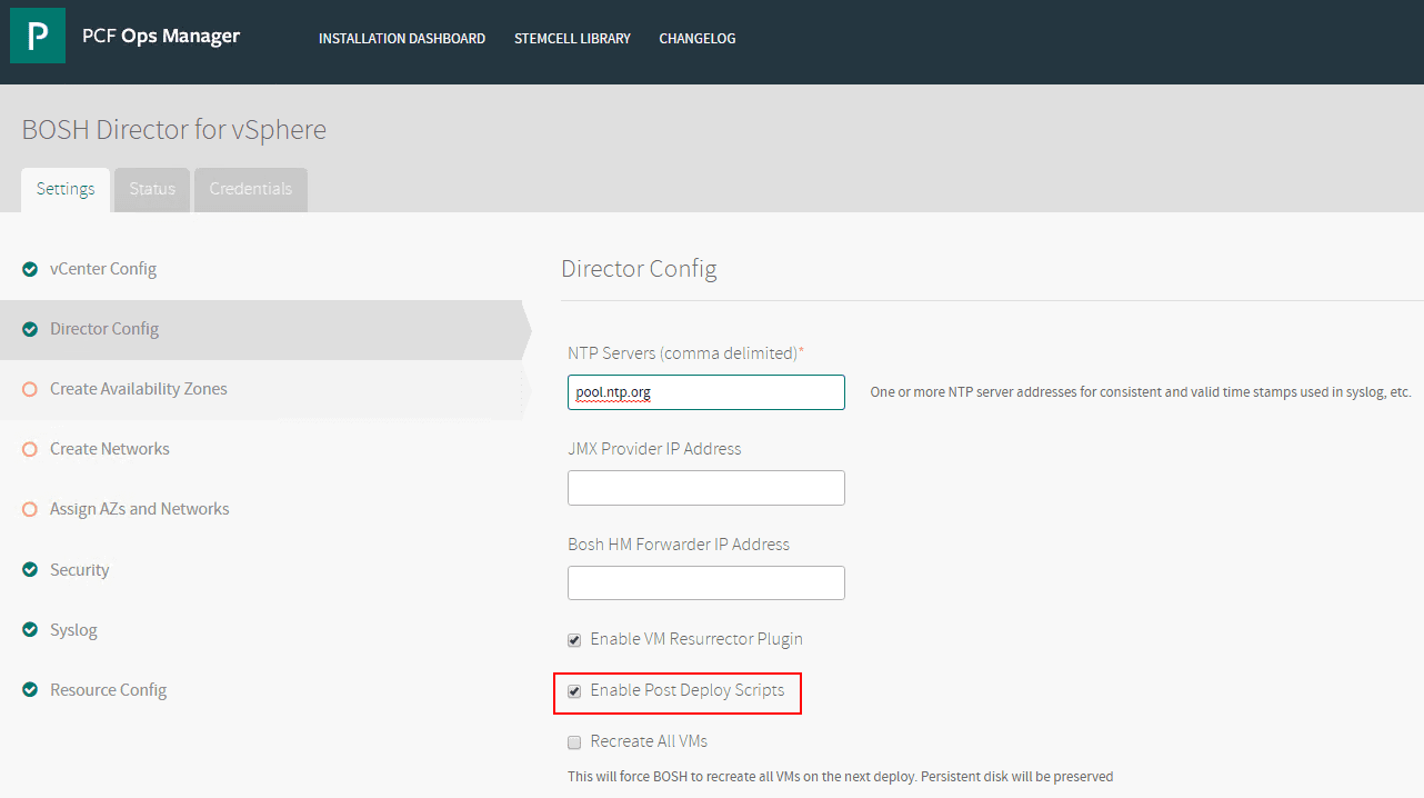 Theย Director Config will have you setup NTP as well as many other available options.ย Click toย Enable Post Deploy Scripts to have configuration automatically applied.
