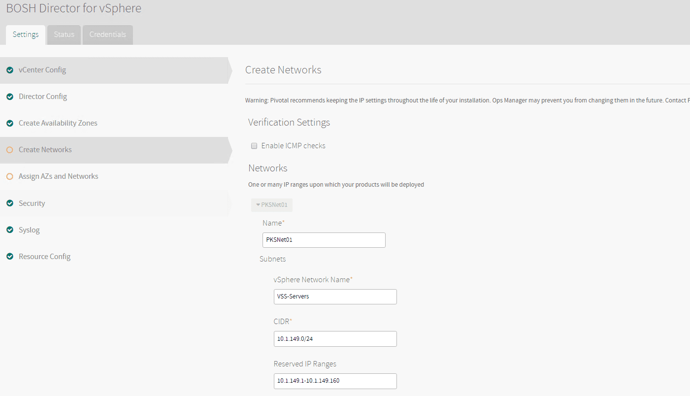 In this first post, we have taken a look at the initial phase ofย Getting Started with VMware Pivotal Container Service PKS PCF Ops Manager Install.ย This included deploying the Pivotal Container Service PCF Ops Manager into VMware vSphere and then setting up the authentication mechanism for the appliance.ย After that, we configured the BOSH Director for vSphere which includes setting up the connection to your vCenter Server, Director Config, Networks, Availability zones, etc.ย Once the BOSH Director for vSphere is configured, we applied the configuration.ย Then, we downloaded the Pivotal Container Service and imported the product into the PCF Ops Manager dashboard.ย In the next post, we will look at configuring the Pivotal Container Service and the next steps.