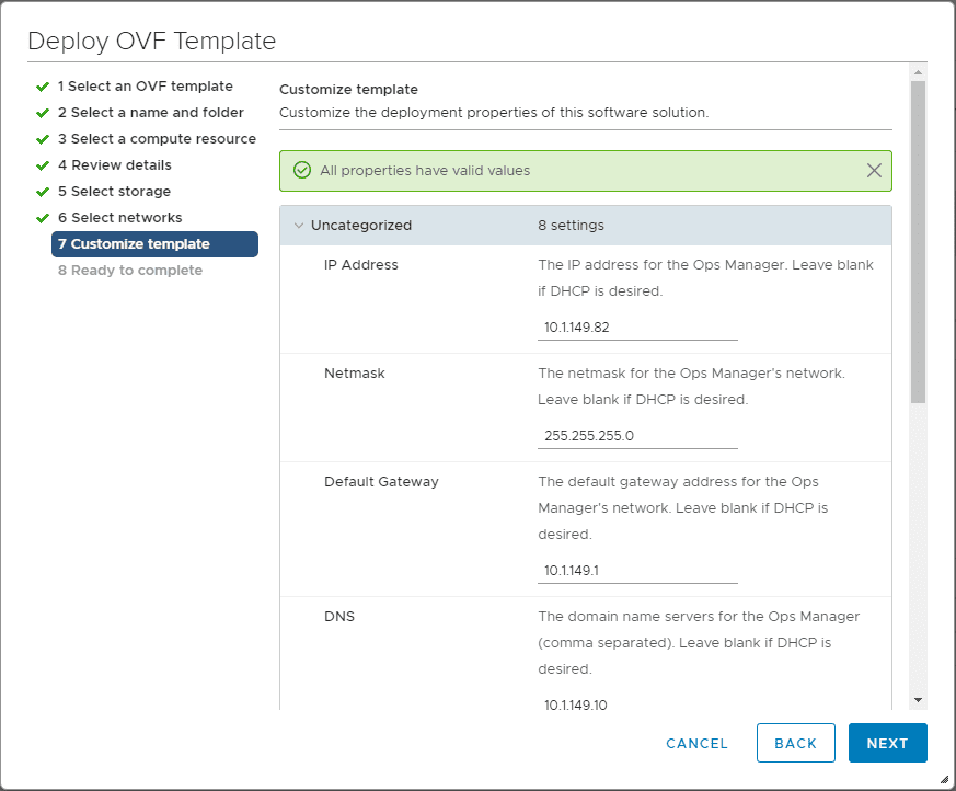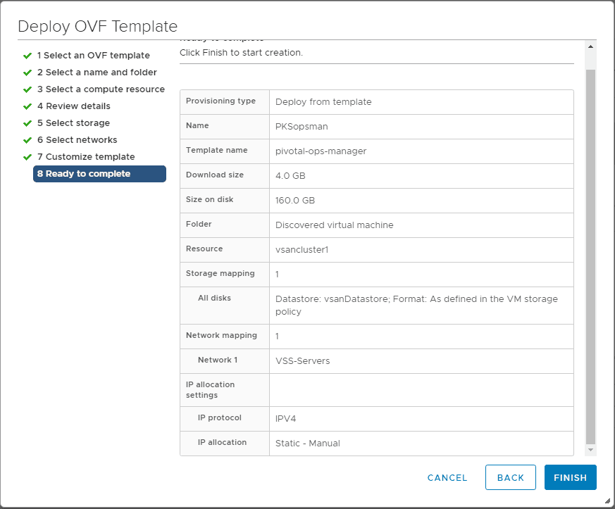 Finalize the config and begin deploying the appliance.