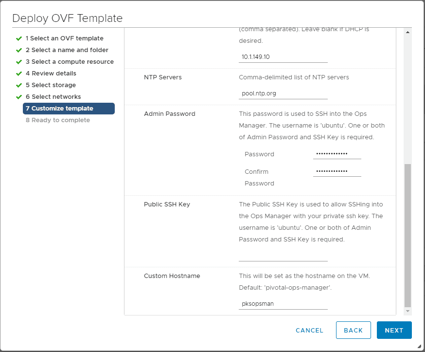 Pay attention to theย Customize Template screen as here you will set your network config as well as passwords, etc.