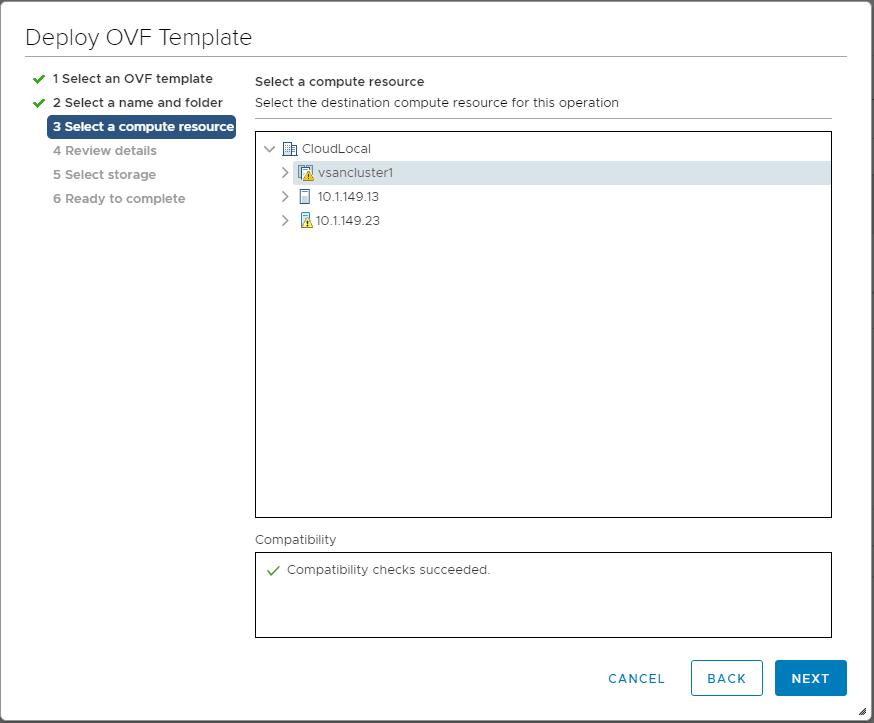Select a cluster/host that you want to house the appliance.