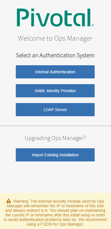 Now that we have the appliance deployed into vSphere, we can begin the configuration of the Pivotal Containers Operations Manager authentication configuration as well as the initial configuration of the vSphere connection.