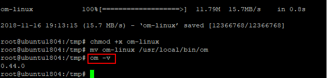 wget https://github.com/pivotal-cf/om/releases/download/0.44.0/om-linux chmod +x om-linux mv om-linux /usr/local/bin/om