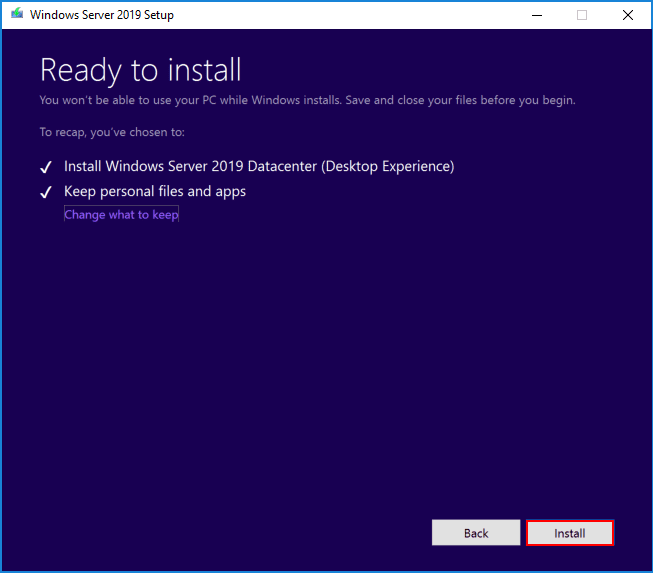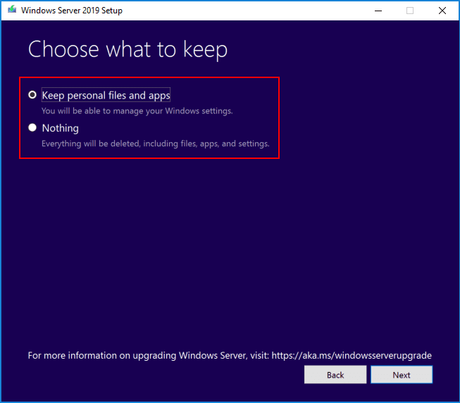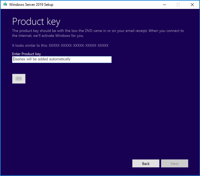 Next, you will be prompted to enter a product key for Windows Server 2019.ย You will not be able to proceed with the upgrade until you enter a product key.