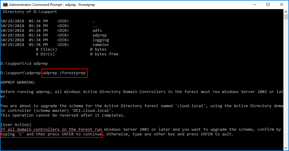 The process to run the forestprep and domainprep processes is the same as in previous generations.ย Simply navigate to theย Supportadprep folder on the installation media and run theย adprep utility with the appropriate switches.ย First, run forestprep, and then domainprep.