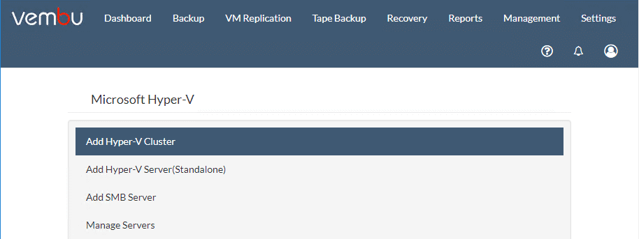 Backing up Hyper-V Clusters with Vembu BDR Suite v4.0