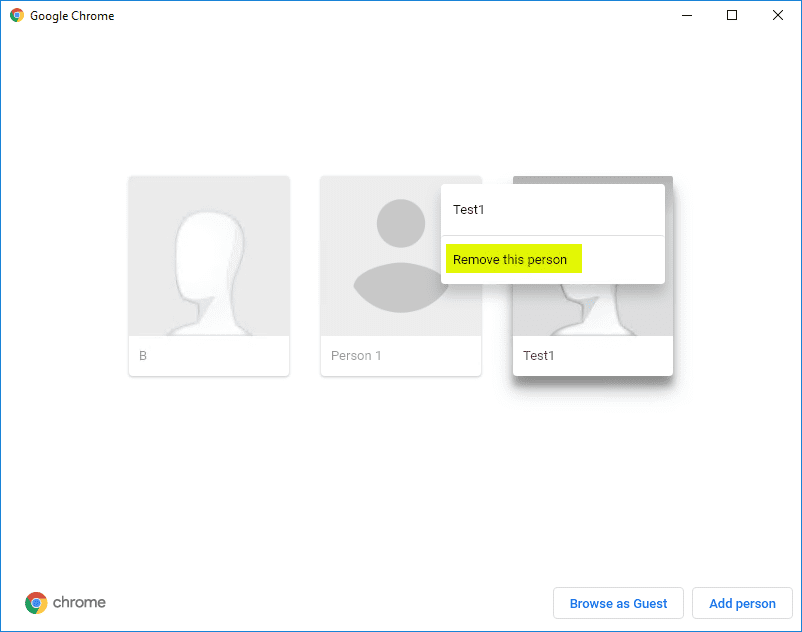 Now on the next screen, select the Add person button. You will also see the currently configured Chrome users listed as well.