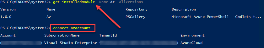 Once the module is installed and loaded into the PowerShell session, we can now connect to the Azure instance: