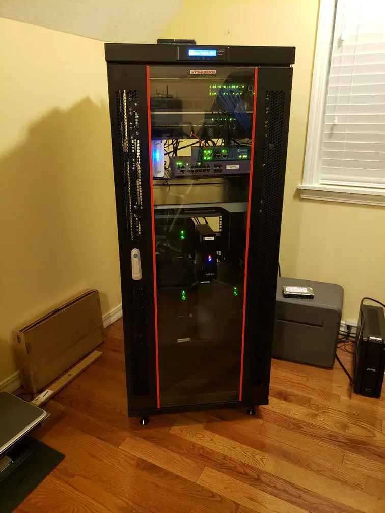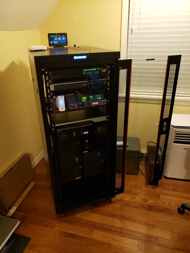 Love your set up! I’m just starting my network journey and recently bought the 27U rack with the mesh sides. I would like to ask you what is the best way to set up a lab on the rack. Do I put the biggest piece of equipment at the bottom? You can text me if wish when u have time. I have a CCNA lab with VoIP and security. (910)361-6714 what’s app or text msg.