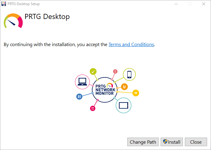 The PRTG Desktop installation couldn’t be easier. Simply running the installer and clicking Install is the extent of what you have to do. The new app will install in under 10 seconds on most systems.