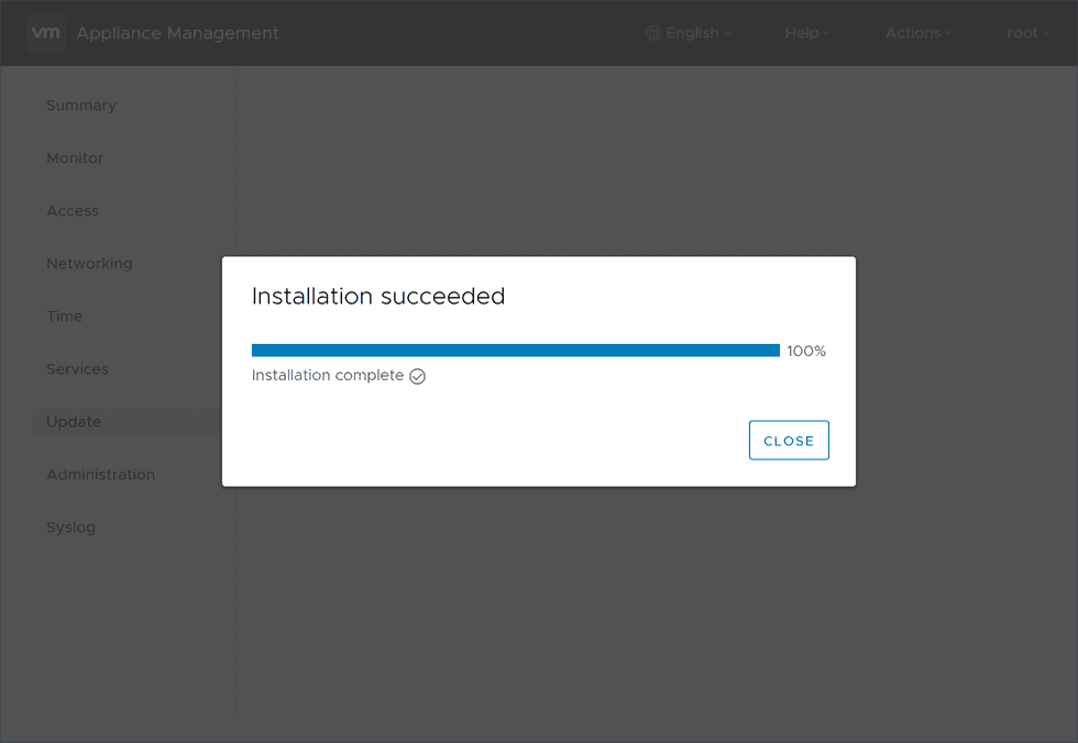 After a few minutes, the Installation succeeded message should display. You simply have the option to Close the dialog.