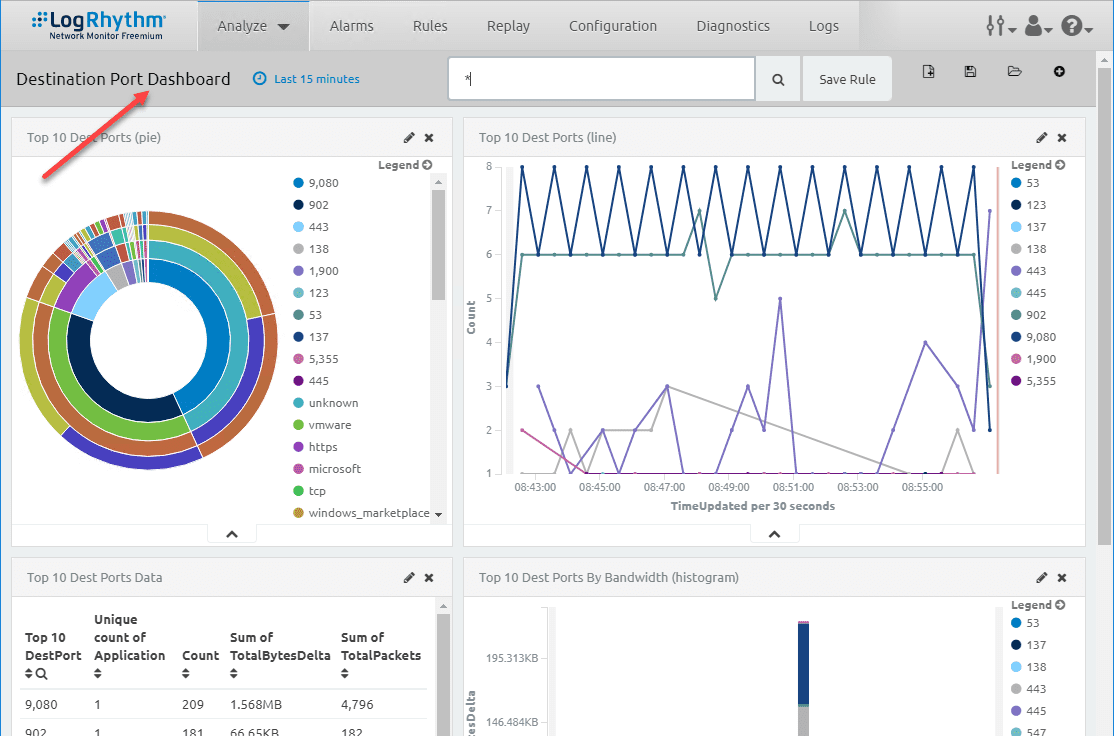 A really great view is the Destination Port Dashboard. I find that many focus on filtering and knowing what is coming into a network. However, equally important is egress traffic. If attackers get in, they will most definitely be making connections outbound. Having this kind of visibility and knowing where traffic is exiting to, is a key component of network security, visibility, and forensics.