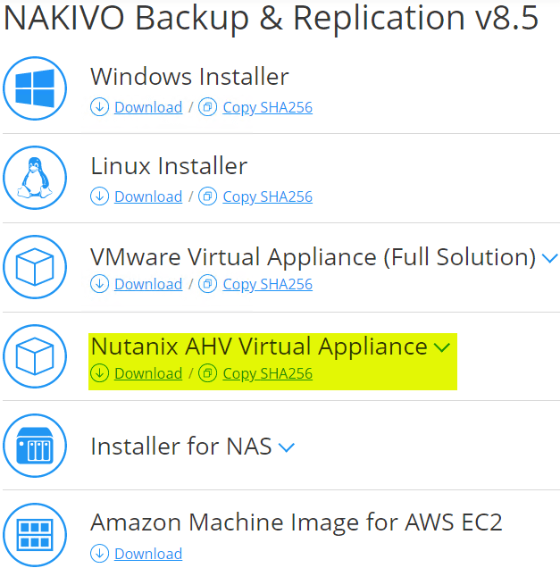NAKIVO Backup & Replication continues to improve its stance as a major player in the realm of enterprise data protection solutions. There are many things I really like about the solution including the wide range of available options for installation. As you see below, not only does NAKIVO support protecting the Nutanix AHV environment, they also now offer running their solution as a Nutanix AHV Virtual Appliance along with the many other options that have been around for installing NAKIVO.