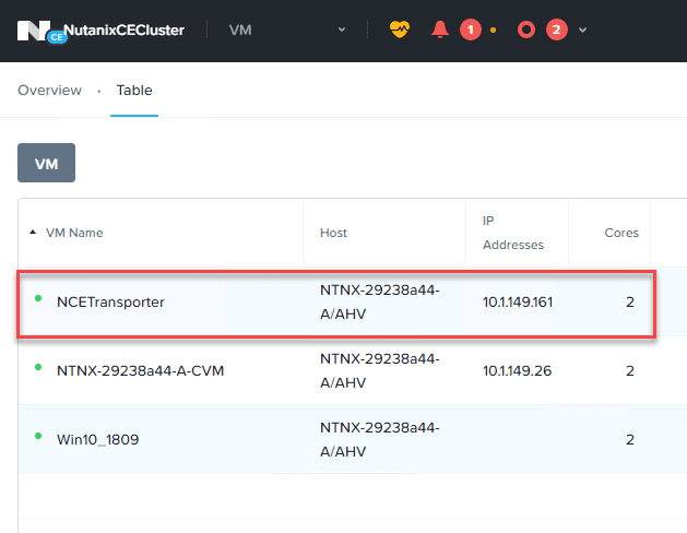 The Nutanix Transporter is deployed in the Nutanix AHV environment and ready to begin backing up VMs.