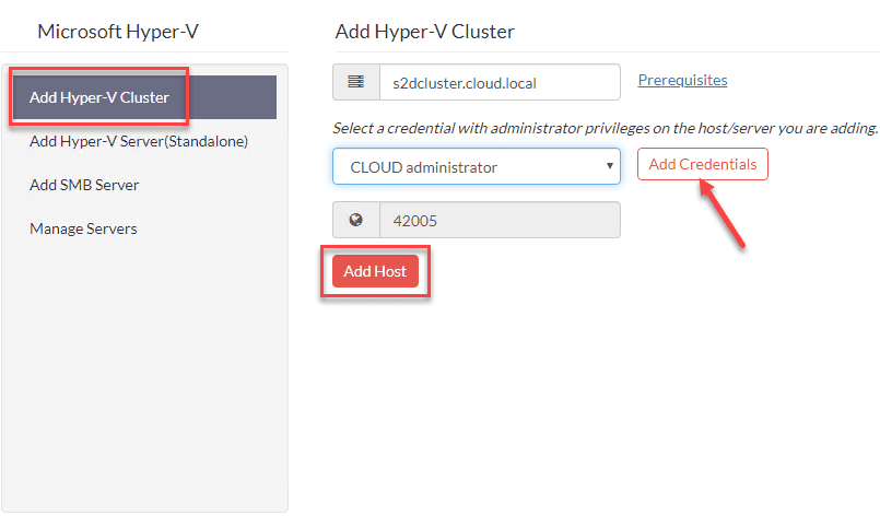 Let’s see how Vembu can easily backup Hyper-V VMs residing in a Hyper-V cluster configuration. You will simply need to have the FQDN of your Hyper-V cluster handy and Add Credentials to connect to the Hyper-V cluster.