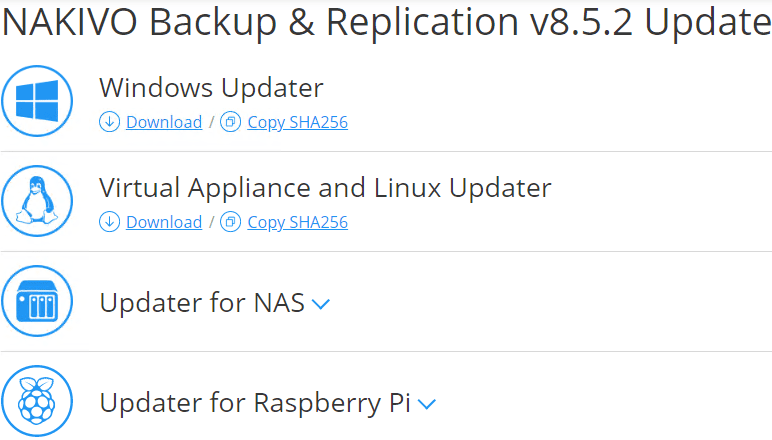 After clicking the Download link, you will be taken to the NAKIVO website to pull down the updater file for updating the NAKIVO appliance or other NAKIVO platform of your choosing.