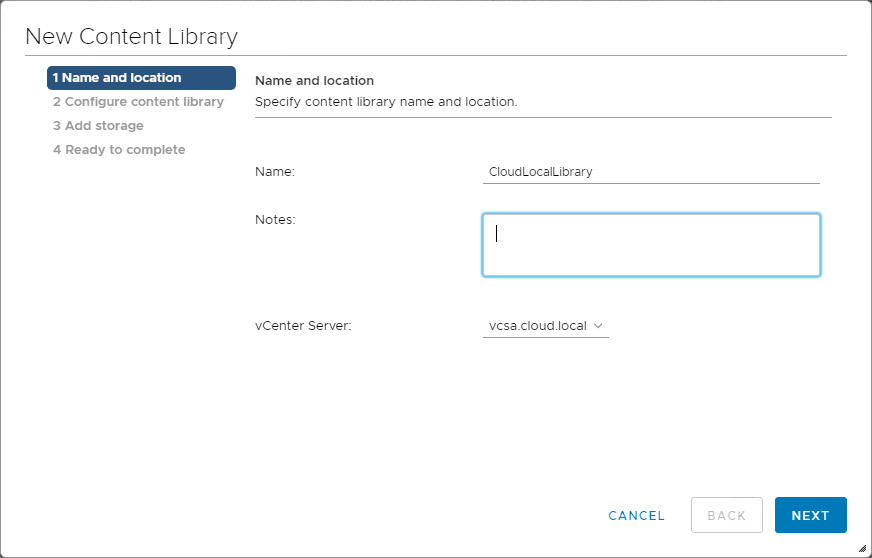 The first step to begin sharing files between ESXi and vCenter Servers is to create a library and enable publishing. We already stepped through the process to create a content library in the previous post, however, let’s take a quick look at a few screenshots to do this and enable publishing.
