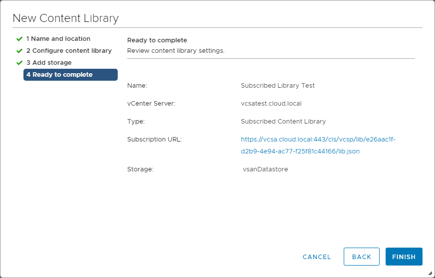 Now that you have a file that is hosted in the source Content Library that is published, we can create a subscribed library that allows subscribing another vCenter Server to this content.