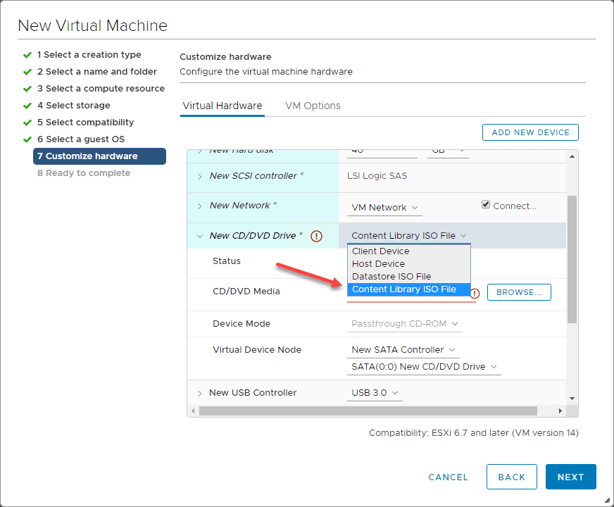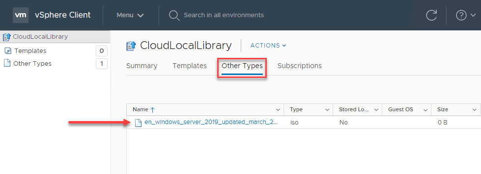 You can now use the Content Library ISO File option when building a new VM and make use of the subscribed items containing ISO files.