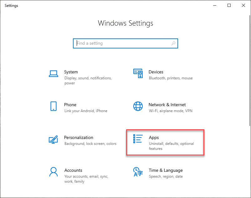 To get to the point of installing the new Remote Server Administration Tools via the Features on Demand install, navigate to the Apps & features configuration page in Windows 10 1809 and 1903 that is found under the Windows Settings page. You can get to Windows Settings quickly by pressing the “Windows key + I” buttons together.