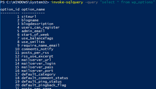 Below are examples of running the Invoke-SqlQuery cmdlet. One thing to note is that you can’t point the cmdlet to a MySQL query file, or at least I didn’t see a way to do this. You can only embed the query inside the cmdlet. It would be nice to be able to point the cmdlet to a query file, especially those that are more complex.