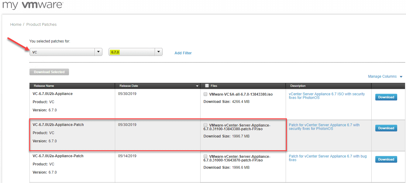 As you can see above, the Release Name is listed as VC-6.7.0U2a-Appliance-Patch and is in ISO form. You can tell this is a patch by the size of the ISO file compared to the regular Appliance ISO file which is more than twice as large.