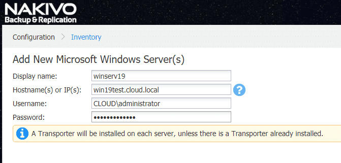 Adding a Physical Windows Server to the NAKIVO Backup Inventory