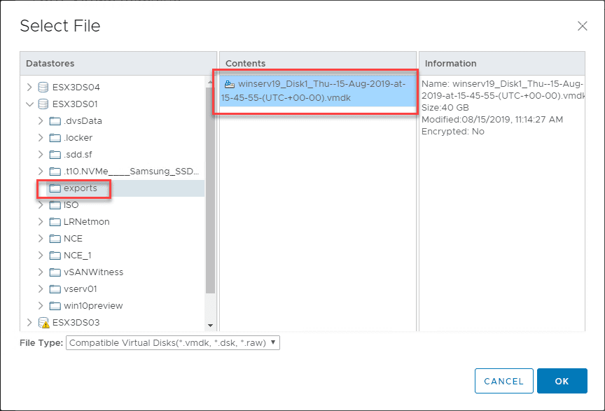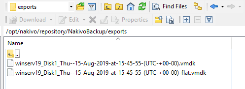 The NAKIVO repository directory worked out just fine. As you can see, for VMware disk exports, you will see the resulting pair of VMDK files.