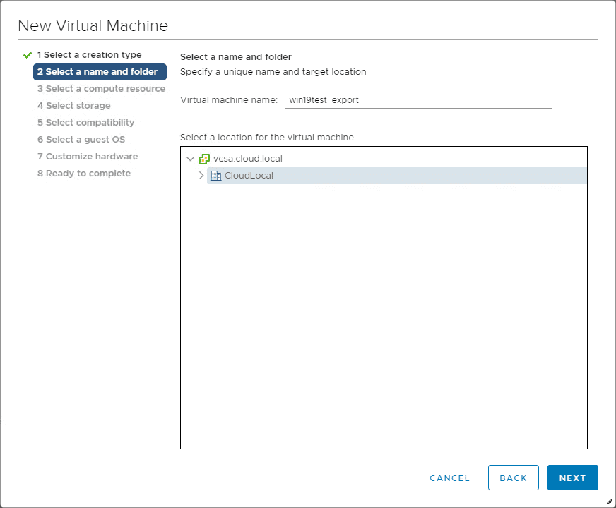 Normal VM wizard….choose the name and folder.
